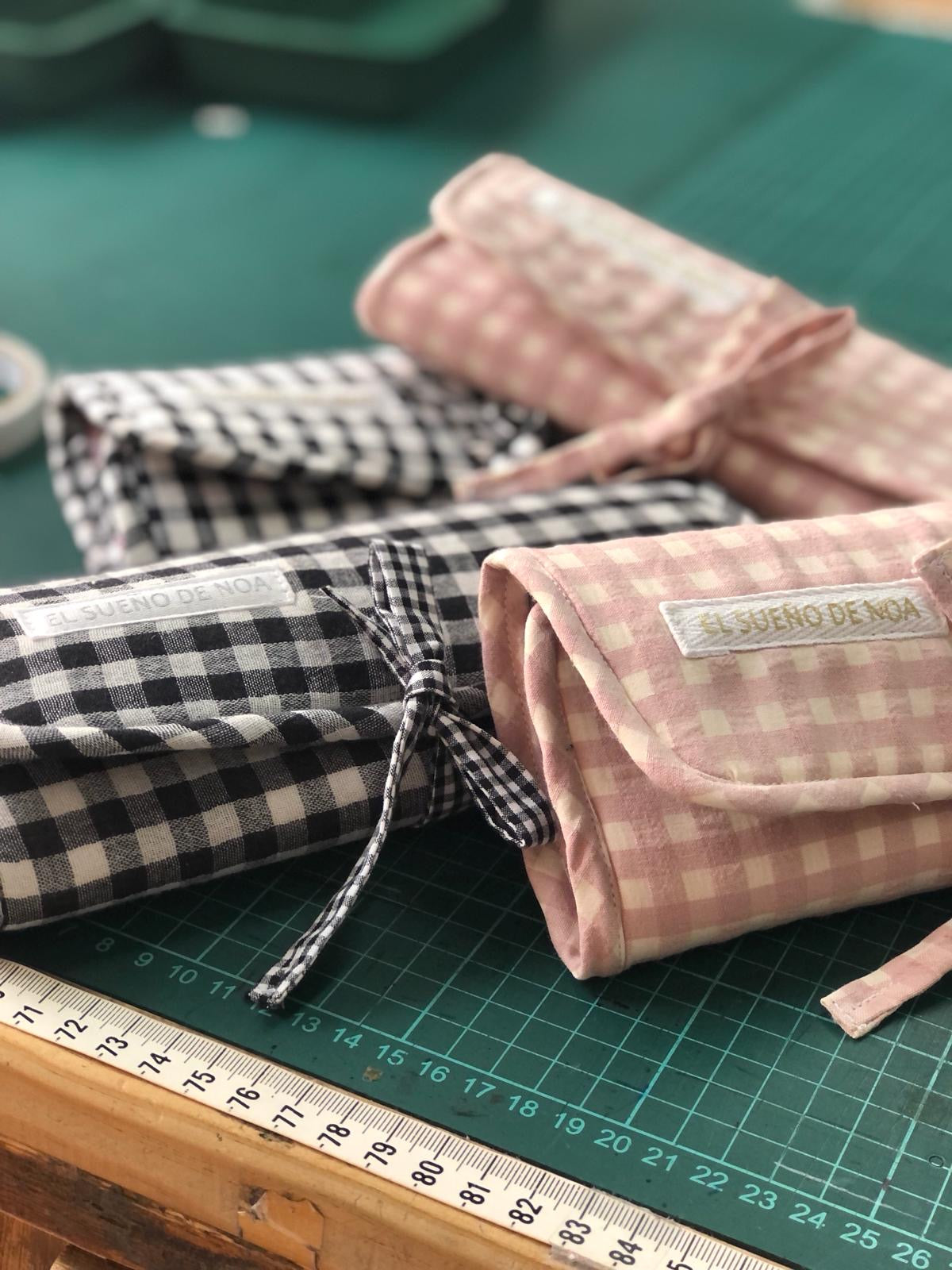 Joyero viaje, con departamento para anillos, pendientes con dos cremalleras.